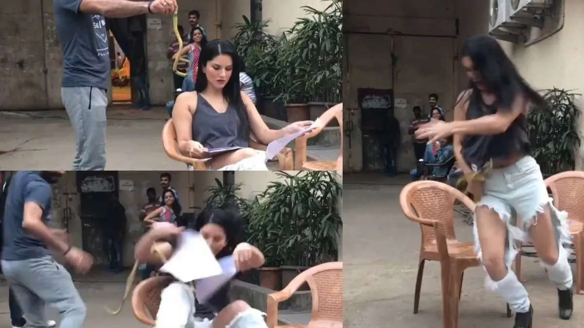 सामने आए वीडियो में आप देख सकते हैं कि सनी लियोनी किसी शूटिंग सेट पर मौजूद हैं। वह कुर्सी पर बैठकर स्क्रिप्ट पढ़ रही हैं। तभी एक शख्स पीछे से आता है और अचानक उन पर सांप छोड़ देता है। सांप को देखते ही एक्ट्रेस अपना आपा खो बैठती हैं। वह किसी तरह इसे अपने शरीर से निकालती है और तेजी से दौड़ने लगती है।