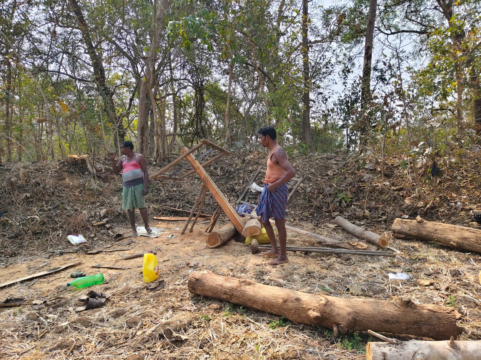 देवभोग में सागौन की अवैध कटाई का भंडाफोड़ : 18 लठ्ठे और आरा जब्त, मुख्य सरगना फरार, खेत में चल रहा था खेल