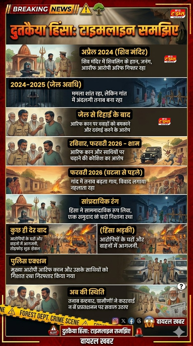 1 फरवरी की रात दुतकैया गांव में सब कुछ सामान्य था, लेकिन कुछ ही देर में हालात अचानक बदल गए। गांव की गलियों में शोर, चीखें और भगदड़ की आवाजें गूंजने लगीं। लोग अपने घरों में बंद होकर जान बचाने की कोशिश कर रहे थे। बाहर गाड़ियों को जलाया जा रहा था और गैस सिलेंडरों के धमाके सुनाई दे रहे थे। कई परिवारों ने बताया कि उस वक्त उन्हें अपनी जान बचने की कोई उम्मीद नहीं थी।