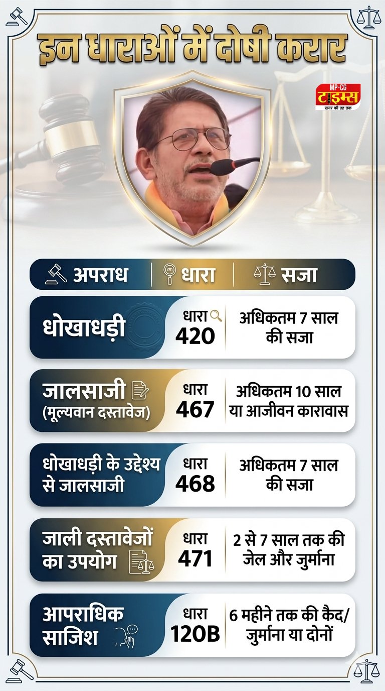 Datia MLA Rajendra Bharti Convicted in 27-Year-Old FD Fraud Case, Sentenced to 3 Years: उन्हें आपराधिक साजिश (धारा 120B) और धोखाधड़ी व जालसाजी (धारा 420, 467, 468, 471) में दोषी माना गया है। सह-आरोपी बैंक लिपिक रघुवीर प्रजापति को भी दोषी ठहराया गया है।