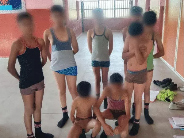 इस मामले में बच्चों को बिना कपड़ों के खड़ा किए जाने की तस्वीरें भी सामने आई हैं, जिससे अभिभावकों में भारी आक्रोश देखा गया।