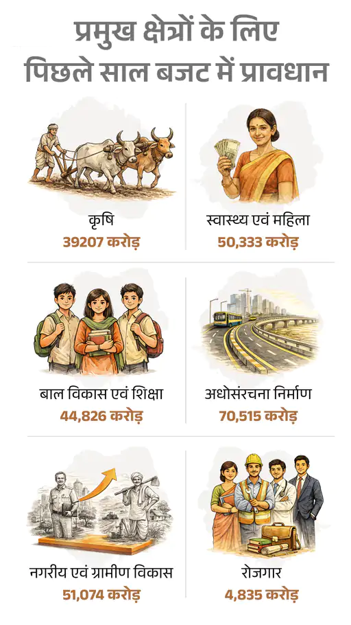 युवाओं के लिए: सरकार अगले एक साल में 50,000 नई नौकरियों का ऐलान कर सकती है। विकसित भारत-रोज़गार और आजीविका मिशन ग्रामीण (VB-G RAM G) के लिए बजट में 30% से अधिक की वृद्धि की जा रही है।