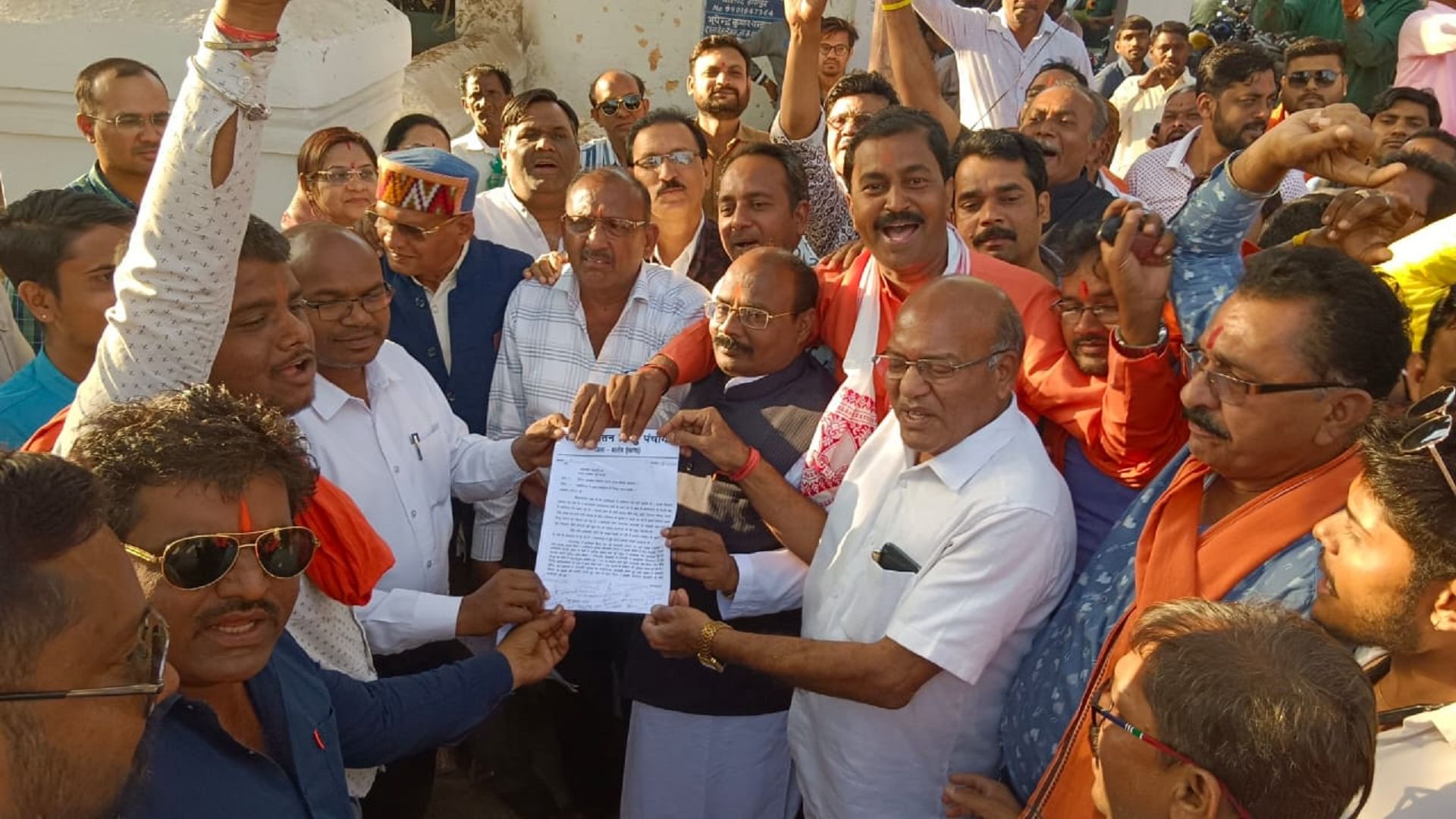 बालोद में प्रदर्शन करते हिंदू संगठनों के कार्यकर्ता।