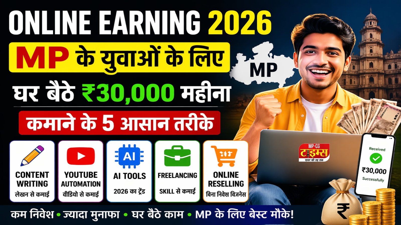मध्य प्रदेश के युवा घर बैठे कैसे करें कमाई ? : Online Earning 2026, MP के युवाओं के लिए घर बैठे ₹30,000 महीना कमाने के 5 आसान तरीके