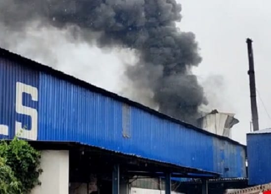 भिलाई स्थित फैक्ट्री में लगी भीषण आग।
