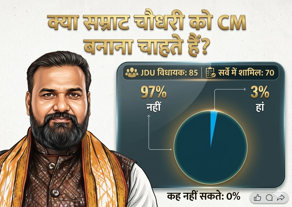 सम्राट चौधरी के सपोर्ट में JDU के सिर्फ 2 विधायक : 85 में 68 MLA नहीं चाहते BJP का मुख्यमंत्री, जानिए 97% MLA किसे बनाना चाह रहे CM ?