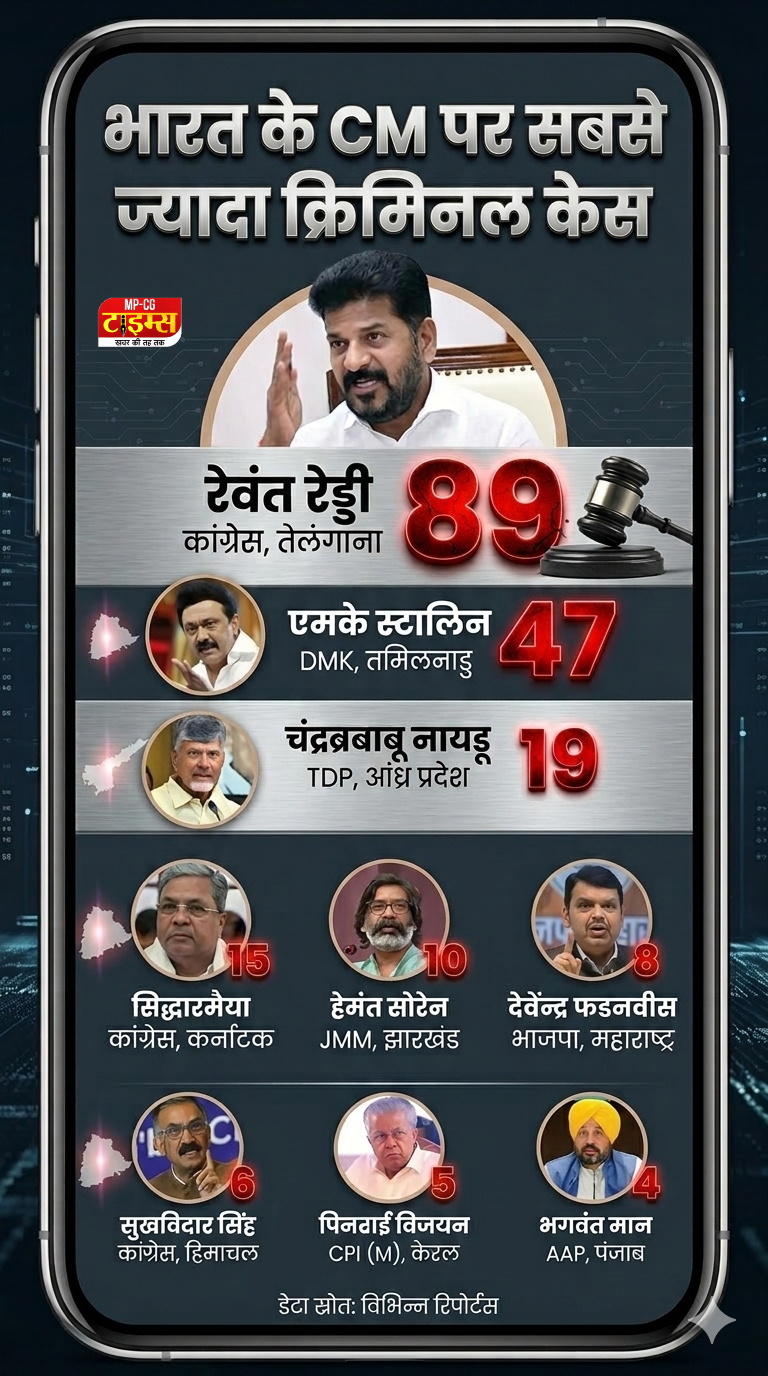 देश के 30 मुख्यमंत्रियों में से 12 यानी 40% मुख्यमंत्रियों के खिलाफ criminal cases against CM India दर्ज हैं। इनमें से 10 यानी 33 फीसदी पर हत्या की कोशिश, किडनैपिंग और रिश्वतखोरी जैसे serious crime cases India शामिल हैं। तेलंगाना के CM रेवंत रेड्डी पर सबसे ज्यादा 89 मामले दर्ज हैं।