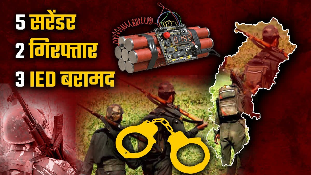 : छत्तीसगढ़ में 5 नक्सलियों का सरेंडर: 2 गिरफ्तार और 3 IED बरामद, जानिए किस-किस नक्सली ने डाले हथियार ?