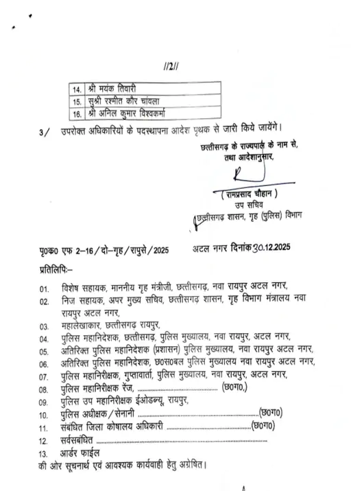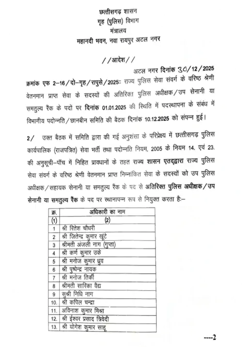 छत्तीसगढ़ में 16 DSP बने ASP : नए साल से पहले प्रमोशन का तोहफा, लिस्ट में देखिए अफसरों के नाम