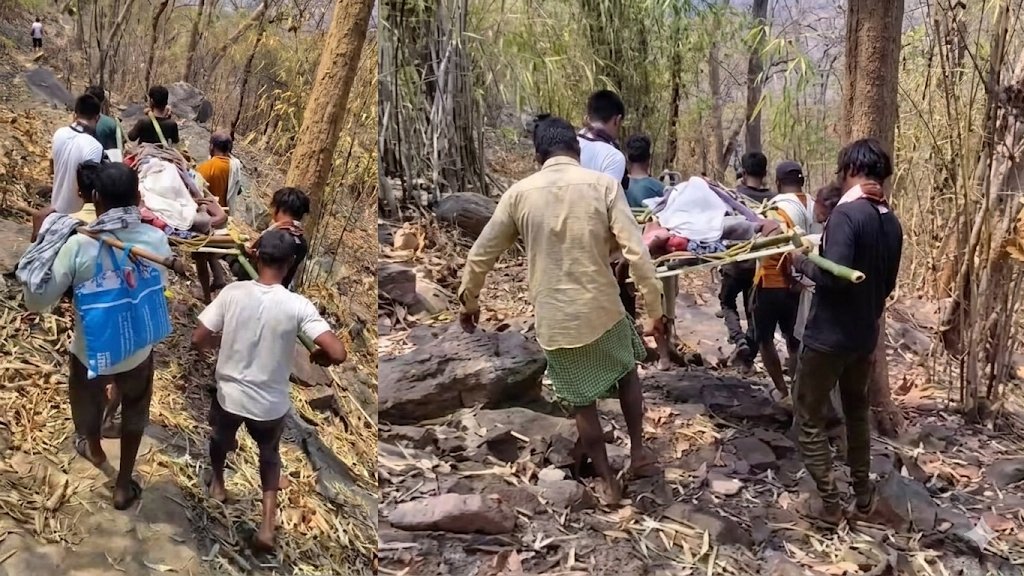 गरियाबंद में खाट पर बेरहम सिस्टम ? : स्ट्रोक पीड़ित को 17KM खटिया से ढोकर लाया गया, एंबुलेंस नहीं पहुंची, BMO 15 घंटे से बेखबर