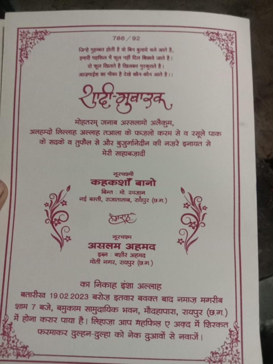 दो दिन पहले हुई दोनों की शादी हुई थी। ऐसे में हत्या के कारणों का खबर लिखे जाने तक पता नहीं चल पाया है। परिजन की ओर से जानकारी देने पर पुलिस मौके पर पहुंची। इस दौरान दोनों पति-पत्नी चित अवस्था में पड़े थे। टिकरापारा थाना के मुताबिक, शवों को पोस्टमार्टम के लिए भेजा गया है। रिपोर्ट आने पर ही स्थिति स्पष्ट हो पाएगी। युवक-युवती पहले से एक दूसरे को जानते थे। आज शादी का रिसेप्शन था। इस दौरान युवक कमरे में जाकर पत्नी से बात कर रहा था। किसी बात पर पत्नी की हत्या कर वह भी खुदकुशी कर ली।