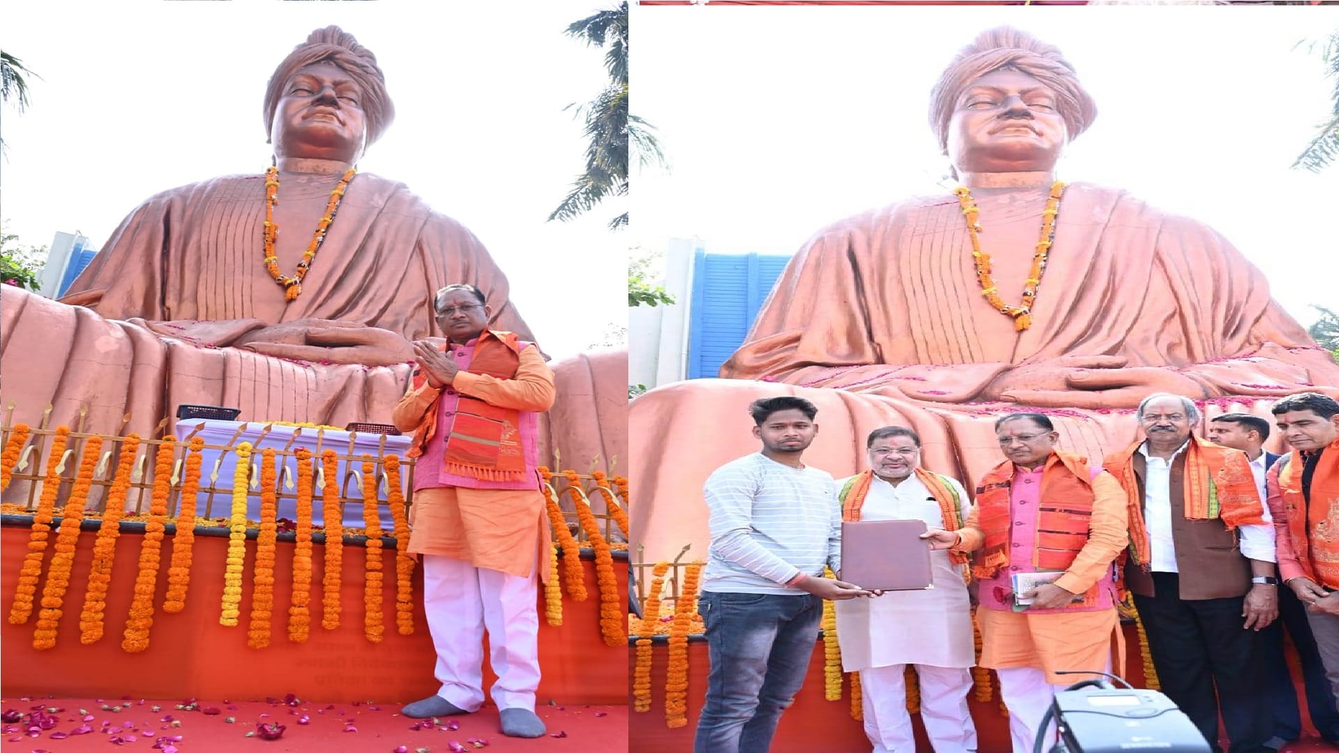 National Youth Festival in Raipur: सीएम विष्णुदेव साय आज शुक्रवार को स्वामी विवेकानंद जयंती पर राजधानी रायपुर के स्वामी विवेकानंद सरोवर उद्यान में आयोजित राष्ट्रीय युवा महोत्सव में शामिल हुए। मुख्यमंत्री ने यहां स्थित आदिवासियों के आराध्य आदिशक्ति बूढ़ादेव मंदिर में पूजा-अर्चना की। उद्यान में स्थापित स्वामी विवेकानंद की प्रतिमा पर पुष्प अर्पित कर उन्हें श्रद्धांजलि दी। इस अवसर पर रायपुर सांसद सुनील सोनी, संस्कृति एवं पर्यटन मंत्री बृजमोहन अग्रवाल, खेल एवं युवा कल्याण मंत्री टंकराम वर्मा, विधायक मोतीलाल साहू और रामकृष्ण मिशन स्वामी विवेकानंद आश्रम रायपुर के स्वामी अव्ययात्मानन्द, स्वामी प्रपत्यानन्द, स्वामी देवभावानन्द भी उपस्थित थे।