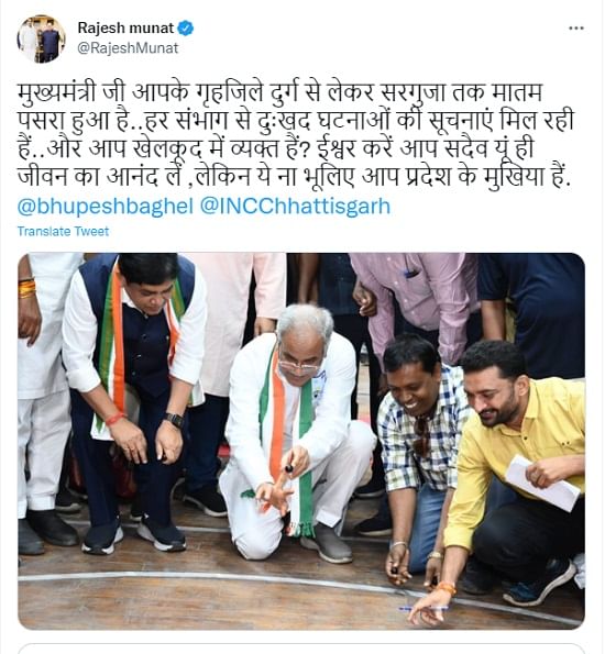 मातम में आप खेल-कूद में व्यस्त पूर्व मंत्री मूणत ने जशपुर में हुई ट्रिपल मर्डर की वारदात को लेकर भी निशाना साधा है। लिखा कि, दुर्ग से बस्तर तक, सरगुजा से बिलासपुर। रायपुर तक में कानून व्यवस्था का हाल बेहाल है। ये दुःखद है। मुख्यमंत्री जी आपके गृहजिले दुर्ग से लेकर सरगुजा तक मातम पसरा हुआ है। हर संभाग से दुःखद घटनाओं की सूचनाएं मिल रही हैं..और आप खेलकूद में व्यक्त हैं? ईश्वर करें आप सदैव यूं ही जीवन का आनंद लें ,लेकिन ये ना भूलिए आप प्रदेश के मुखिया हैं।