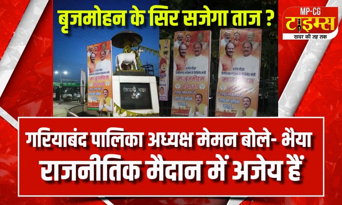 : बृजमोहन के सिर सजेगा सियासी ताज ? जीत से पहले समर्थकों ने पोस्टर से पाटा शहर, गरियाबंद पालिका अध्यक्ष मेमन बोले- भैया राजनीतिक मैदान में अजेय हैं