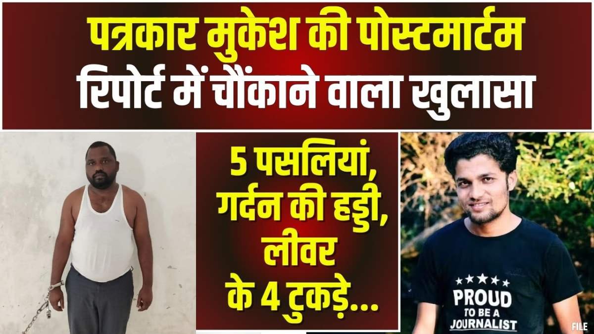 : पत्रकार हत्याकांड: लिवर के 4 टुकड़े, गर्दन टूटी-हार्ट फटा मिला, सिर पर 15 चोट के निशान, पोस्टमॉर्टम रिपोर्ट में खुलासा, आरोपी ठेकेदार गिरफ्तार