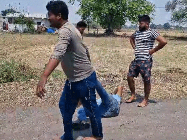 : चेन छीनकर भाग रहे दो बदमाशों को पीटा: लुटेरे के पैर बांधकर घसीटा, चेहरे पर लात-घूंसे मारे और बरसाईं लाठियां