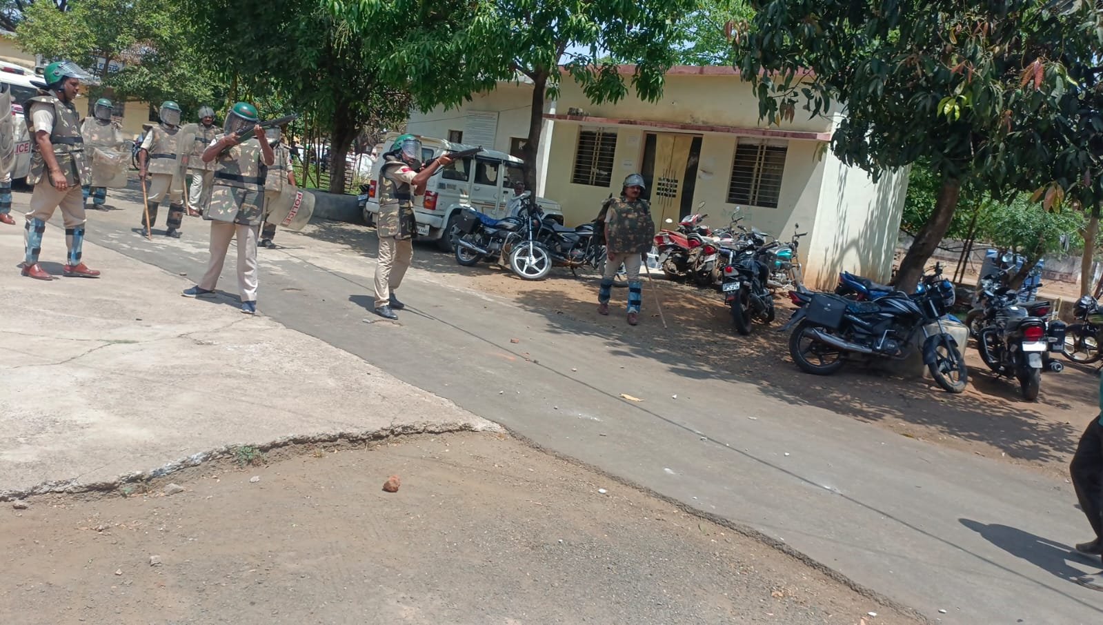 : राजेंद्रग्राम में बलवा परेड: दंगाइयों ने किया पथराव, TI के नेतृत्व में पुलिस ने संभाला मोर्चा