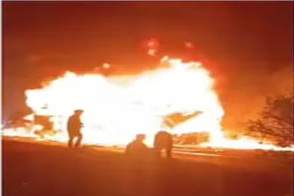 Karnataka Sleeper Bus Fire Video : Chitradurga में जिंदा जले 10 यात्री, हिरियूर में लॉरी से टक्कर के बाद बस जलकर राख
