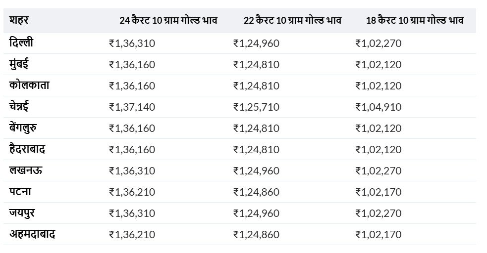 यह उछाल सेफ-हेवन एसेट्स (safe-haven assets) के लिए लगातार global demand को दिखाता है। घरेलू मार्केट में भी गोल्ड की कीमतें तेजी से बढ़ी हैं। बाजार डेटा के मुताबिक 24 कैरेट गोल्ड 1 लाख 36 हजार 160 प्रति 10 ग्राम, 22-कैरेट सोना 1 लाख 24 हजार 810 और 18-कैरेट सोना 1 लाख 2 हजार 120 पर कारोबार कर रहा है।