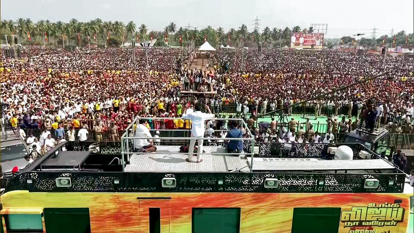 यह रैली तमिलनाडु के ईरोड में आयोजित की गई थी। 27 सितंबर को करूर में हुई भगदड़ के बाद यह राज्य में विजय की पहली बड़ी रैली मानी जा रही है। करूर भगदड़ में 41 लोगों की मौत हुई थी, जिस मामले में विजय के खिलाफ कोर्ट में केस भी चल रहा है। इस रैली में करीब 35,000 लोग शामिल हुए, जिससे Public Rally को लेकर प्रशासन पहले से सतर्क नजर आया।