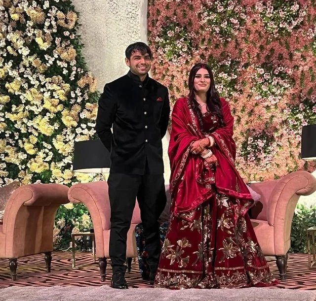 Neeraj Chopra Reception Photos के मुताबिक, गोल्डन ब्वॉय नीरज चोपड़ा और टेनिस खिलाड़ी Himani Mor tennis player की शादी का रिसेप्शन आज हरियाणा के करनाल शहर में आयोजित किया गया।