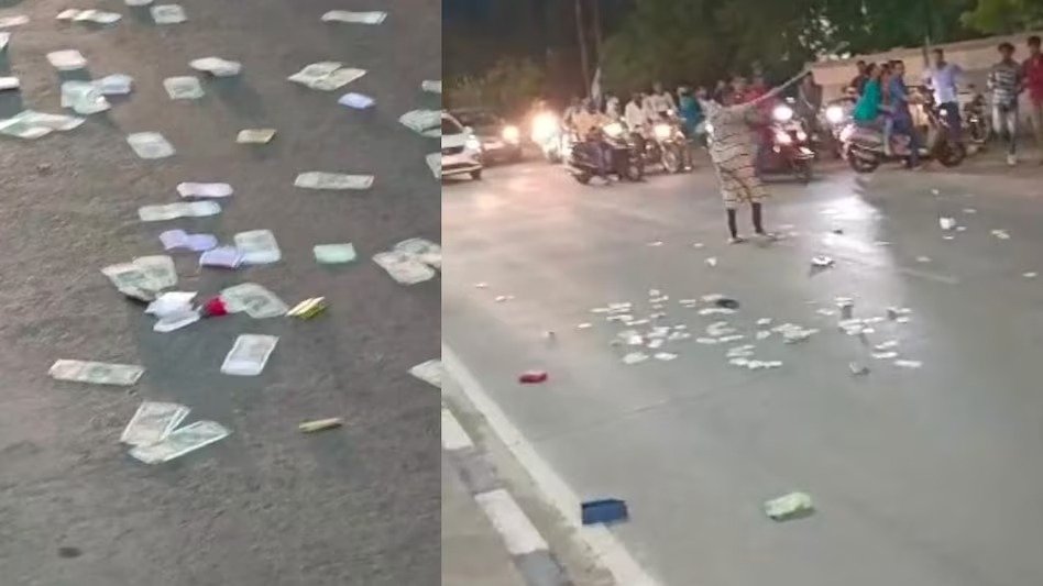 Video of woman blowing 500-500 notes viral: मध्यप्रदेश के नीमच शहर के व्यस्ततम मार्ग और कैंट थाने के ठीक सामने उस समय अफरा-तफरी मच गई, जब एक महिला ने अपने बैग से 500-500 रुपये के नोट उड़ाने शुरू कर दिए. यह नजारा देखकर हर कोई हैरान रह गया. यात्री अपने वाहन के स्टॉप नोट उड़ाते हुए महिला को देखने लगे. जिससे वहां जाम की स्थिति बन गई. यह देख पुलिस को मोर्चा संभालना पड़ा और भीड़ को तितर-बितर करना पड़ा. जिसका वीडियो सोशल मीडिया पर वायरल हो रहा है.