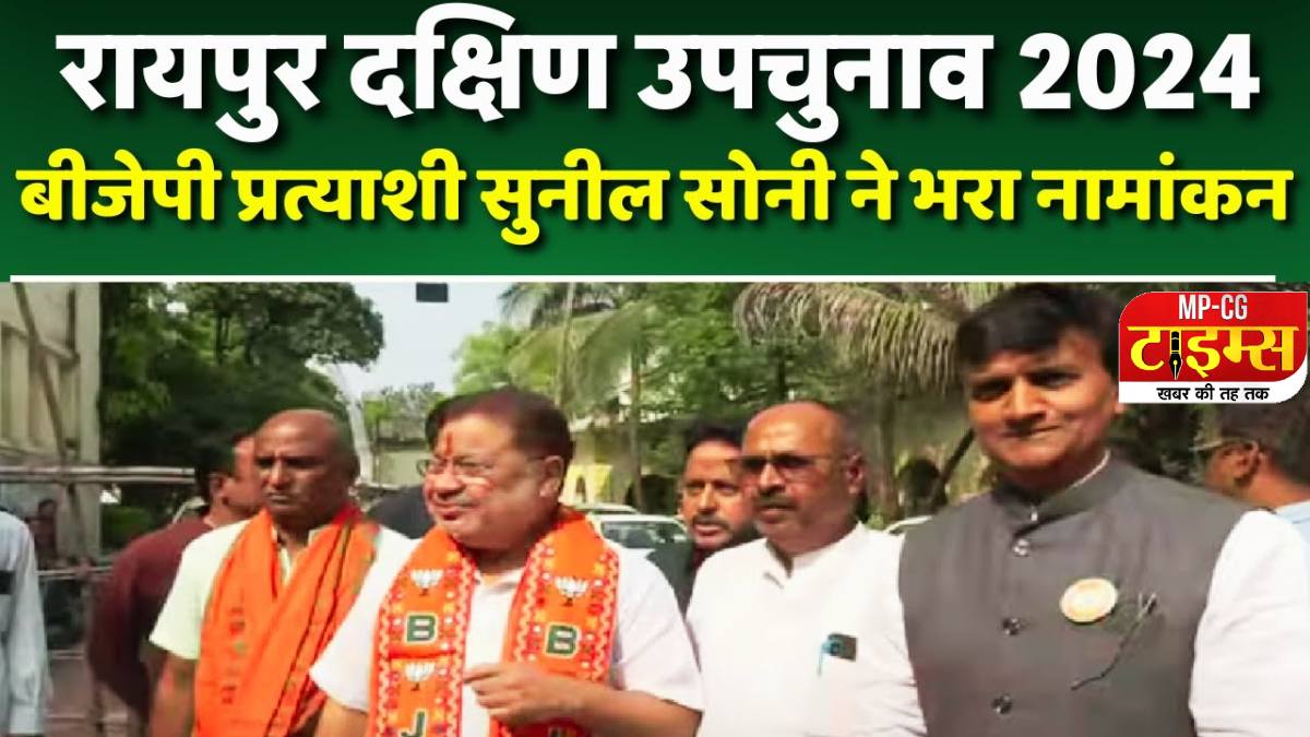 Raipur South by-election BJP candidate Sunil Soni nomination: रायपुर दक्षिण उपचुनाव के लिए भाजपा प्रत्याशी सुनील सोनी ने नामांकन का दूसरा सेट दाखिल कर दिया है। कलेक्ट्रेट में नामांकन दाखिल करने से पहले भाजपा ने नामांकन रैली के बहाने अपनी ताकत का प्रदर्शन किया। इसमें मुख्यमंत्री समेत 8 मंत्री शामिल हुए।