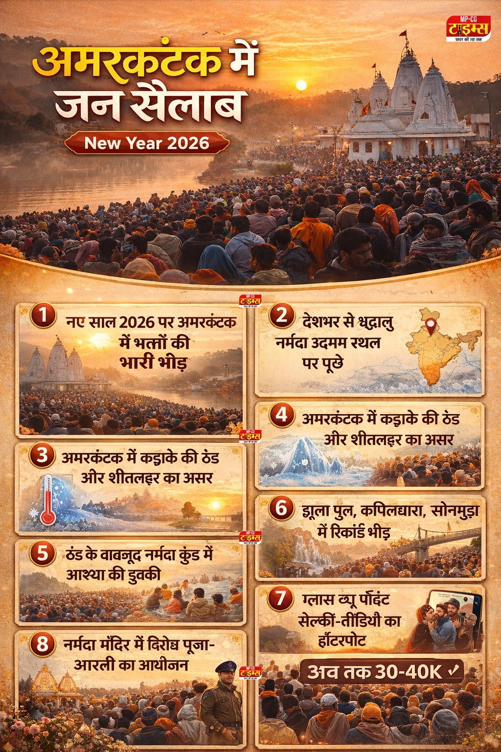 Amarkantak में कड़ाके की ठंड में आस्था की डुबकी : New Year 2026 में 40-50 हजार भक्तों का उमड़ा जन सैलाब, प्रशासन अलर्ट, सुरक्षा के पुख्ता इंतजाम