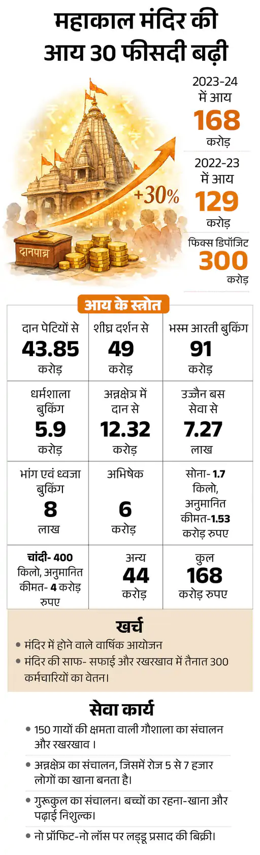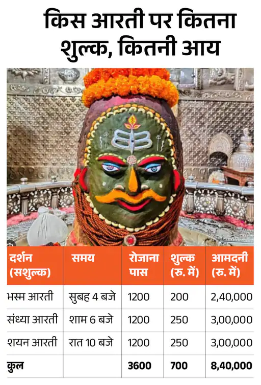 Ujjain Mahakal Arti Fee Protest | Controversy Hindu | Sandhya Shayan Aarti: वे नकद के साथ सोना-चांदी भी चढ़ावे के रूप में देते हैं। इसके अलावा शीघ्र दर्शन, भस्म आरती बुकिंग, अभिषेक, अन्नक्षेत्र में दान, धर्मशाला बुकिंग, उज्जैन दर्शन बस सेवा, भांग एवं ध्वजा बुकिंग से भी मंदिर को आय होती है।