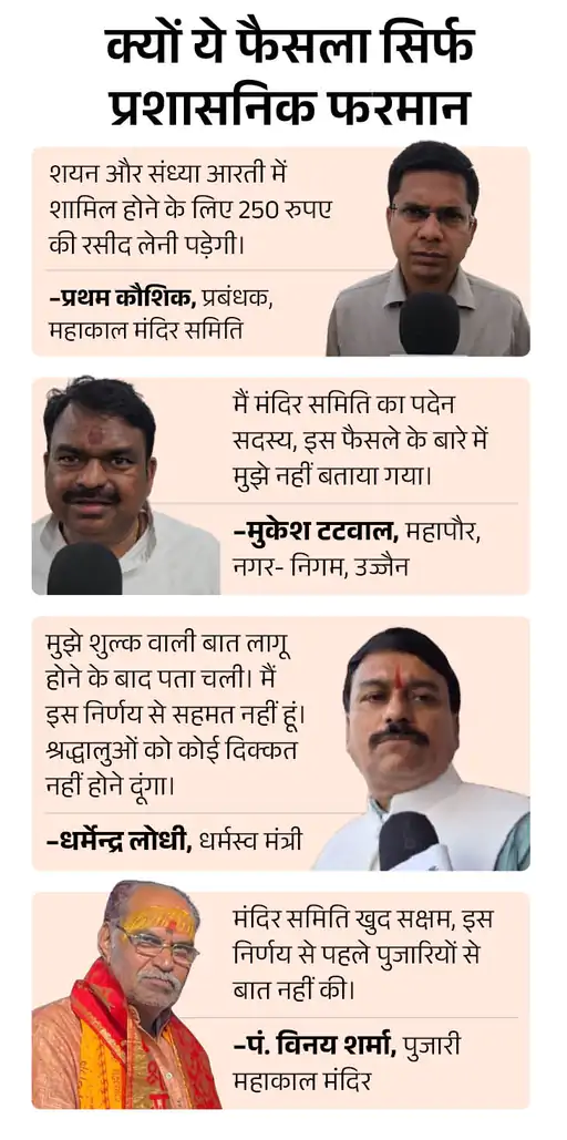 मंदिर समिति का फैसला पूरी तरह प्रशासनिक आदेश है। इसमें किसी भी जनप्रतिनिधी, पंडित या भक्त मंडलों से बात नहीं की गई। ऐसे लोग जो पैसे देकर भस्म आरती नहीं कर पाते थे, वे निशुल्क शयन या संध्या आरती करते थे।