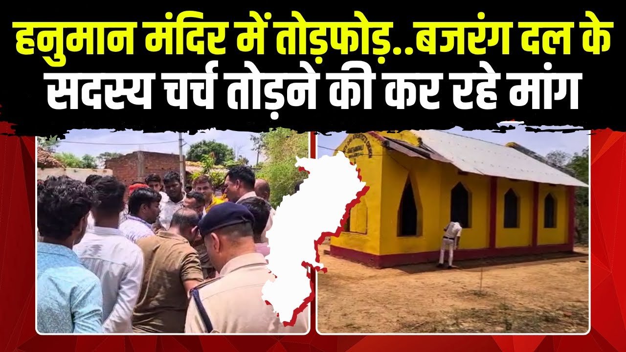 : हनुमान मंदिर तोड़े जाने पर बवाल: हिंदू संगठन ने चर्च का क्रॉस तोड़ा, भगवा गमछा को झंडा बनाकर लगाया, सरपंच बोला- जिसने बनाया उसी ने तोड़ा