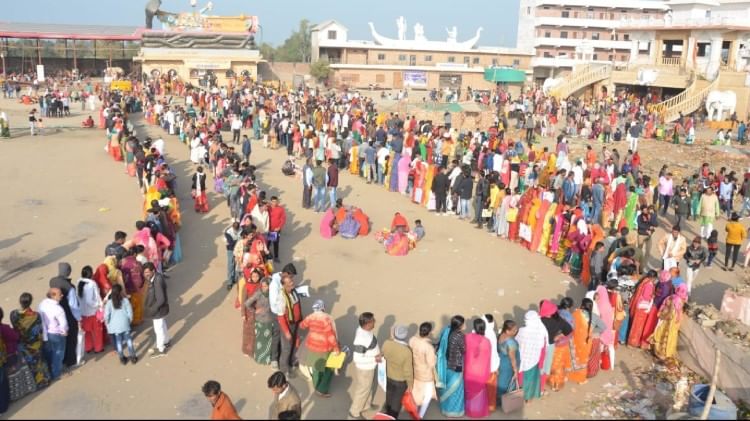 अभिमंत्रित रुद्राक्ष लेने के लिए लगी श्रद्धालुओं की कतार – फोटो : अमर उजाला