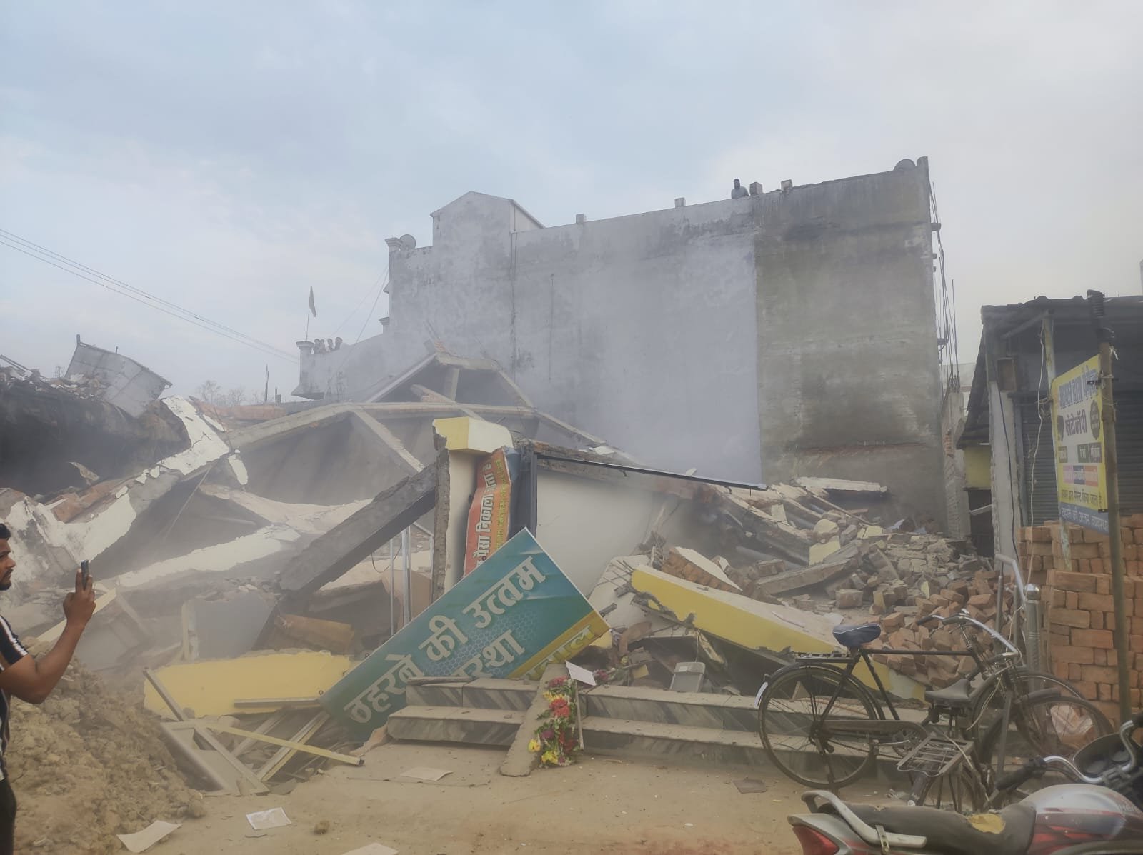 बिल्डिंग के सामने खड़ा एक ट्रैक्टर इस घटना का प्रत्यक्ष गवाह बना। जैसे ही इमारत गिरने लगी, चालक ने तुरंत वाहन स्टार्ट किया और वहां से निकल गया।