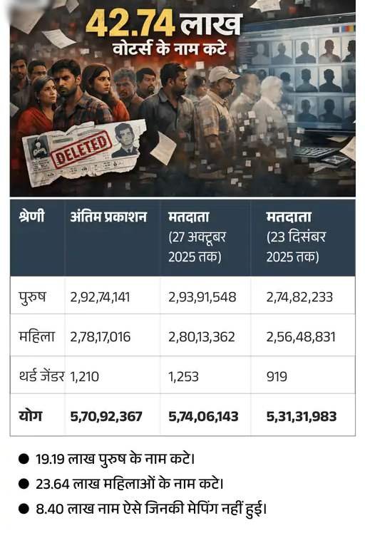 7 नवंबर को शुरू हुआ यह प्रोसेस लगभग 45 दिनों तक चला, इस दौरान हजारों बूथ लेवल ऑफिसर घर-घर जाकर वोटरों का फिजिकल वेरिफिकेशन करते रहे। जिन लोगों के नाम ड्राफ्ट लिस्ट में नहीं हैं, उन्हें इलेक्शन कमीशन की तरफ से नोटिस के जरिए अपना नाम दोबारा जुड़वाने का मौका दिया जाएगा।