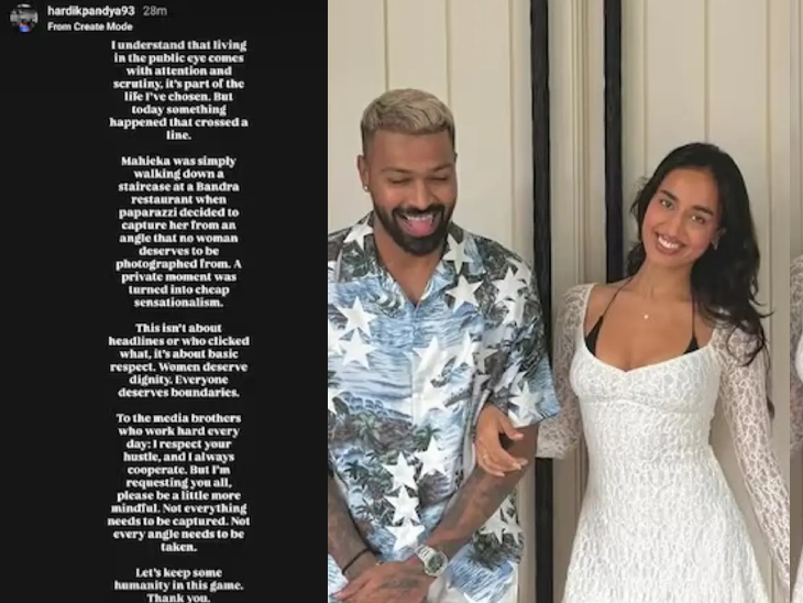 हार्दिक ने मीडिया और फोटोग्राफर्स से महिलाओं के प्रति ज्यादा सम्मान दिखाने की अपील की। उन्होंने कहा, “यह बात सिर्फ खबर बनाने या पहले फोटो लेने की नहीं है, बात है बेसिक रिस्पेक्ट की। हर औरत को इज्जत और मर्यादा मिलनी चाहिए। सबके अपने लिमिट्स होते हैं।