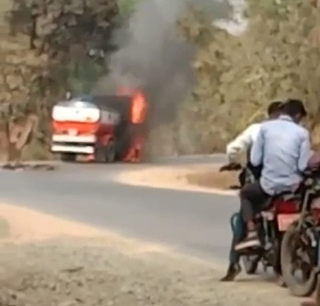 : एक्सीडेंट न्यूज: टैंकर और बाइक की जबरदस्त टक्कर, 3 लोगों की मौत, हादसे के बाद टैंकर में लगी भीषण आग