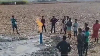 : आग और पानी का एक साथ दिखा नजारा VIDEO: बोरवेल में पानी के साथ निकल रही आग, किसान ने खेत में कराया है बोर, देखने लगी भीड़